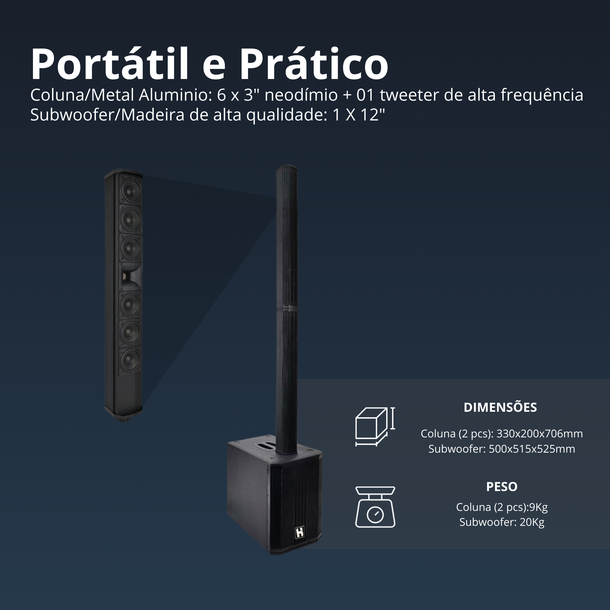O Sistema de Som H Audio Ultra 112 é um sistema de som de coluna ativo versátil e portátil, adequado para uma ampla variedade de usos, incluindo eventos ao vivo, conferências e apresentações teatrais.