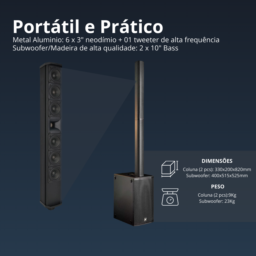 O Sistema de Som H Audio Ultra 210 é um sistema de som de coluna ativo versátil e portátil, adequado para uma ampla variedade de usos, incluindo eventos ao vivo, conferências e apresentações teatrais.