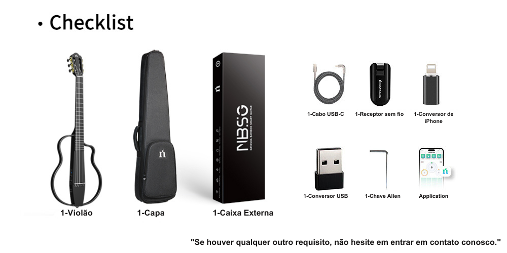 Violão Natasha NBSG Nylon Smart App Preto Brilho
