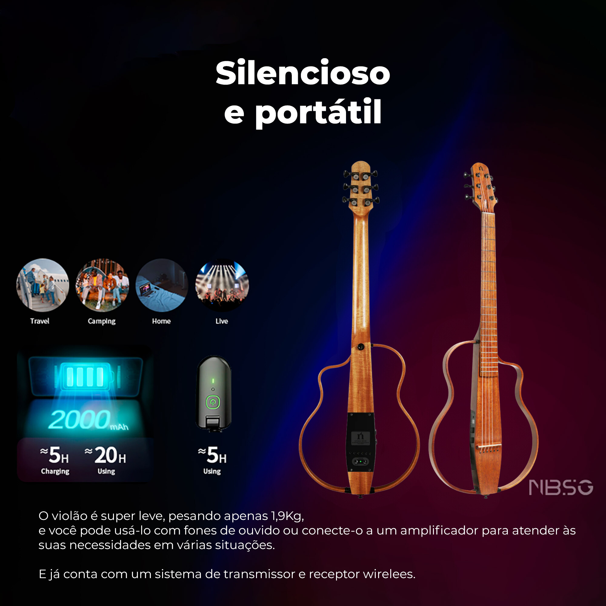 Violão Natasha NBSG Aço Smart Mahogany App Preto Brilho